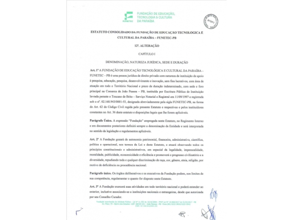 O acesso à íntegra do novo Estatuto da Fundação de Apoio está disponível em https://funetec.com/estatuto.