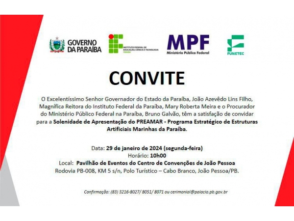 João Pessoa, PB – Em resposta aos desafios ambientais contemporâneos, o Governador da Paraíba, João Azevêdo, anuncia a assinatura de um acordo histórico para a ampliação do Programa Estratégico de Estruturas Artificiais Marinhas (Preamar-PB). O ato ocorrerá, no pavilhão de congressos do Centro de Convenções de João Pessoa, nesta segunda-feira (29), às 10h, marcando uma ação que irá beneficiar todos os municípios do litoral da Paraíba, com investimento sem precedentes de cerca de R$ 10 milhões do Governo Estadual.