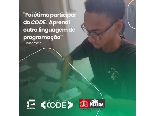 A Iniciativa Code foi lançada em março do ano passado de começar e já beneficiou 6,5 mil alunos da rede municipal de ensino. Com as aulas de programação, crianças e adolescentes estão tendo a oportunidade de desenvolver ambientes digitais, como sites e aplicativos. Os monitores recebem uma bolsa de estudos. É o caso do Jonathan. Graças a esse incentivo, o jovem programador vem ajudando nas despesas de casa.
