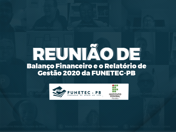 Através de videochamada, o Conselho Curador, Conselho Fiscal e os Instituidores aprovaram por unanimidade as contas, o Balanço Financeiro e o Relatório de Gestão 2020 da FUNETEC-PB. Na ocasião foram eleitos os titulares e respectivos suplentes do Conselho Curador para o exercício 2021/2023.