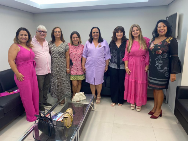 Na foto, da direita para a Esquerda: Madalena Abrantes, Ana Maria Lins, Marta Simone, Lídia Moura, Keitiana de Souza, Mary Roberta, Anselmo Castilho e Cristina Santos.